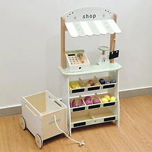 This fun party bundle packed with hours of pretend play fun. It includes: - Fruit vendor set pretend play - Happy bear mini shopping cart - Pink mini shopping cart Price included shipping (drop off and pick up)